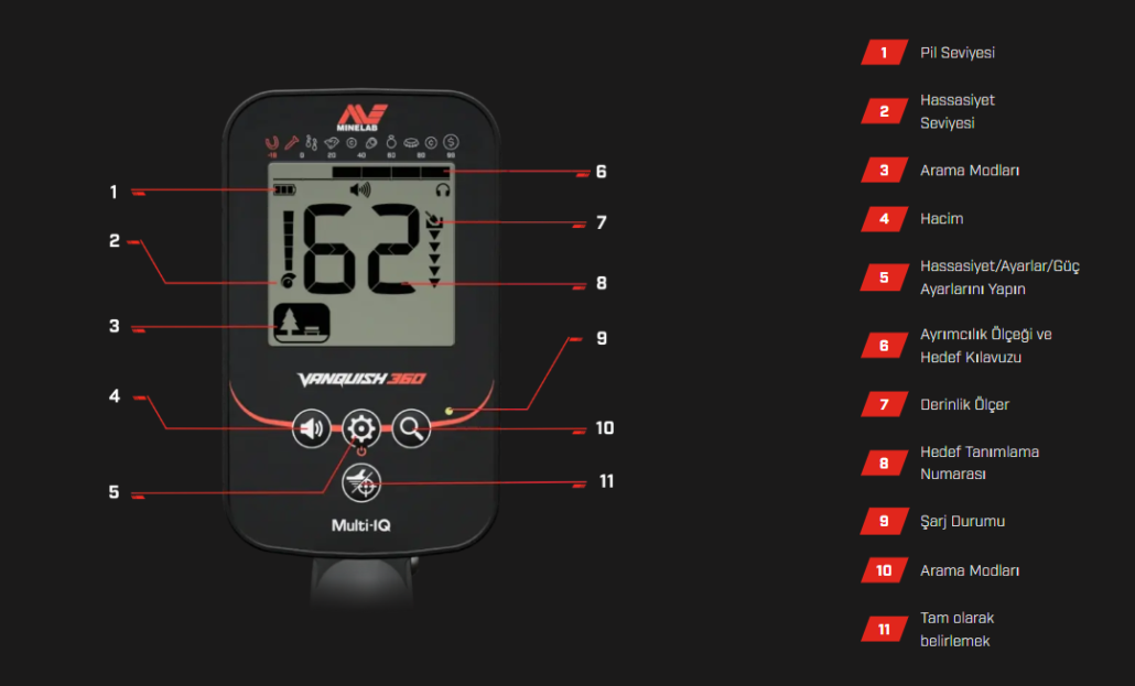 VANQUISH® 360, hafif ve kompakt yapısıyla profesyonel seviyede performans sunarak aramayı kolaylaştırır. Minelab’ın kanıtlanmış Multi-IQ® teknolojisiyle üretilen bu cihaz, daha geniş bir alanı taramak ve daha fazla hedefi belirlemek için aynı anda birden fazla frekansı tarar. Park, Plaj ve Tüm Metal modlarından birini seçin ve birlikte verilen V10X bobiniyle daha geniş bir alanı tarayın. VANQUISH 360, IP68 derecesine sahip olup 5 metreye (16 fit) kadar tamamen su geçirmezdir ve 119 hedef kimliği ve altı ayrım segmenti ile hazineyi hurdalardan ayırmaya yardımcı olur.
